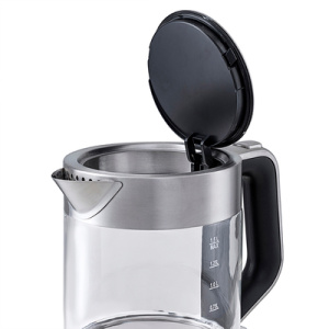 Универсальность использования. Стильный и надежный электрический чайник Kitfort KT-617 предназначен для кипячения воды дома, в офисах и на дачах. Мощность чайника позволяет использовать его в домах со слабой проводкой. Безопасность. Чайник автоматически отключается при закипании и при снятии с подставки, имеет защиту от перегрева и от включения без воды. Ножки подставки чайника противоскользящие. Элегантная подсветка. Кнопка открывания крышки расположена сверху на ручке, а кнопка включения — внизу. При включении чайника загорается синяя подсветка, которая является индикатором работы и одновременно художественно подсвечивает кипящую воду. Стиль и качество. Корпус чайника выполнен из стекла, а крышка и подставка — из сочетания пластмассы и нержавеющей стали. Мерная шкала нанесена на прозрачную часть корпуса. Ручка чайника пластиковая, не нагревается и удобно лежит в руке.
