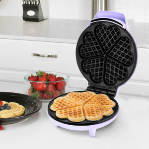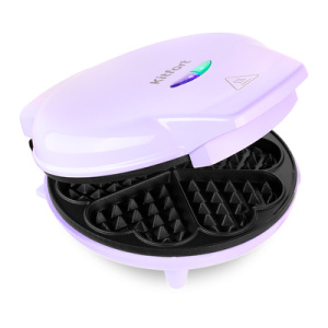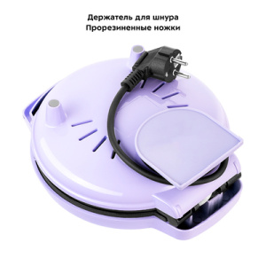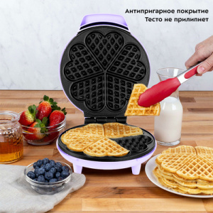 Электрическая вафельница КТ-1688 поможет быстро и без хлопот испечь пышные бельгийские вафли. Вкусный и сытный завтрак для всей семьи обеспечен! Вафельница рассчитана на приготовление 1 большой вафли, которую можно разделить на 5 вафель в форме сердечек. Вафельница выполнена в нежном лавандовом оттенке. Подойдёт в подарок и впишется в любой интерьер, украсив вашу кухню. Вафли пропекутся полностью и равномерно благодаря плотному прилеганию половин и нагревателям, установленные в каждой половине вафельницы КТ-1688. Антипригарное покрытие не даёт прилипнуть тесту в процессе приготовления и позволяет готовить с минимальным количеством масла или без него. Также антипригарное покрытие панелей облегчает чистку, что особенно важно, так как панели являются несъёмными. На нижней части корпуса расположен держатель шнура, обеспечивающий удобство переноски и хранения.