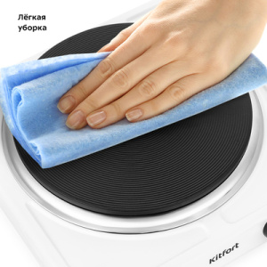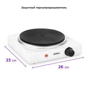Электрическая плита КТ-172 поможет приготовить блюда самой разнообразной кухни. Плита КТ-172 компактная и простая в управлении, поэтому с приготовлением на ней справится любой. Включение, выключение и настройка нагрева осуществляется с помощью регулятора температуры. Поворачивая регулятор температуры по часовой стрелке, вы включаете нагрев и увеличиваете уровень нагрева. Всего у электрической плиты 5 уровней нагрева. Легко и быстро настроив температуру, вы можете жарить, тушить или варить. Прямой нагрев позволяет использовать любую металлическую посуду, даже алюминиевые сковороды. Корпус и конфорки плиты выполнены из металла, благодаря чему после приготовления еды вы можете с лёгкостью убрать плитку от остатков пищи и прочих загрязнений. В плите установлен специальный термопредохранитель, который в случае перегрева плиты разорвёт электрическую цепь и отключит нагрев.