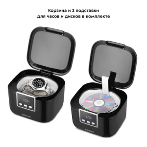 Ультразвуковая мойка КТ-6290 поможет эффективно очистить и продезинфицировать небольшие изделия из металла, пластика и стекла. Управление прибором осуществляется на сенсорной панели. Вы можете выбрать время работы 90, 180, 300, 480 или 600 секунд. Кавитация - это явление, когда в жидкости за короткое время образуются и тут же разрушаются пузырьки воздуха. Соприкасаясь с поверхностью обрабатываемых вещей, они разрываются, создавая множество ударных волн. Происходит глубокая очистка предметов. Когда необходимо почистить маленькие предметы, положите их корзину, затем поставьте корзину в резервуар. Для сохранности ваших часов в комплекте к ультразвуковой мойке идёт специальная подставка. Корпус прибора сделан из пластика, а резервуар, в который помещаются предметы для очистки - из нержавеющей стали. Длина шнура 1,2 м.