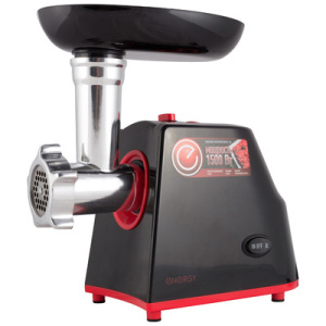 Мясорубка электрическая ENERGY EN-140 мощностью 1500 Вт предназначена для приготовления фарша. Имеет 2 перфорированных диска из стали с отверстиями 5 и 7 мм. Оснащена пластмассовым лотком для загрузки. Удобная ручка для переноски. Прорезиненные ножки для устойчивости.