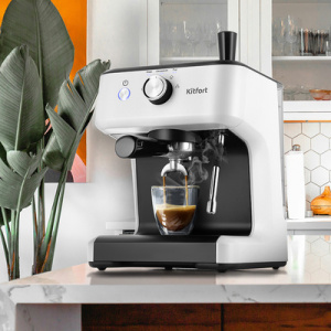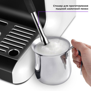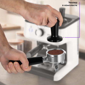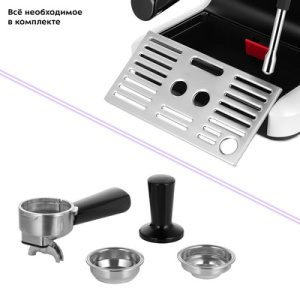 Кофеварка КТ-7169 поможет приготовить кофе эспрессо, капучино или латте, а также множество других видов кофе на ваш вкус. С помощью программирования вы можете задать объём воды, подаваемой через рожок, для приготовления эспрессо и двойного эспрессо. Ключевым отличием кофеварки от всех остальных кофейных устройств является наличие рожка, его часто называют холдер. Молотый кофе помещается в фильтр рожка и прессуется в таблетку. Резервуар для воды съёмный — его можно легко снять и наполнить водой в любом удобном месте. Ёмкость резервуара составляет 2,2 л. Молочную пенку для капучино можно делать самостоятельно. Для приготовления пара и горячей воды в кофеварки есть паровая трубка — стимер. В комплекте к кофейной станции идут 2 фильтра, рожок, темпер. Все комплектующие выполнены из надёжных материалов. Поддон для сбора капель с решёткой легко снимается, моется и устанавливается обратно.
