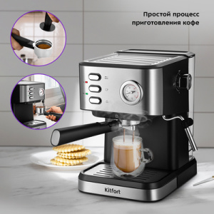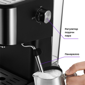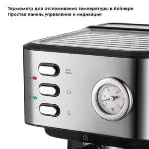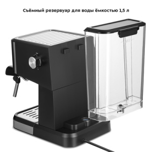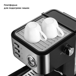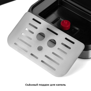 Рожковая кофеварка КТ-7293 поможет приготовить эспрессо, капучино или латте, а также множество других видов кофе на наш вкус. Молотый кофе помещается в фильтр рожка, прессуется в таблетку темпером, затем вода проливается сквозь кофе под давлением. На платформе можно хранить темпер или ставить чашки, чтобы они были тёплыми или лучше сохли после мытья. На платформе удобно размещать чашки во время приготовления молочной пены. Поддон для сбора капель со съёмной решёткой из нержавеющей стали легко снимается, моется и устанавливается обратно. В поддоне установлен специальный поплавок. Если поддон заполнится водой, то поплавок всплывёт выше решётки. Резервуар для воды имеет ёмкость 1,5 л. Его можно легко снять и наполнить водой. Крышка резервуара для воды открывается, поэтому можно заливать воду в резервуар, не снимая его.
