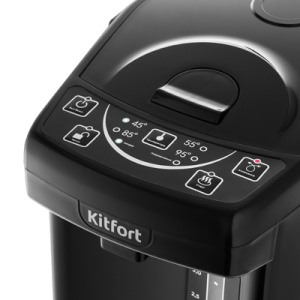 Термопот КТ-2508 с ручкой для переноски служит для кипячения и поддержания t воды на заданном уровне с помощью периодического включения и отключения нагрева. t воды контролируется термодатчиком. Электроника термопота отслеживает t воды в резервуаре и при несоответствии с выбранной t включается или выключается нагрев. При нажатии кнопки ''Старт'' включается водяной насос (помпа), который качает воду со дна резервуара в носик, в затем в вашу кружку. Термопот может не только вскипятить воду, но и нагревать до t 45, 55, 85, 95 С для заваривания различных сортов чая, кофе, для подогрева детского питания. Есть функция ''Замок'' от случайного нажатия и получения ожога. Термопот имеет двойные стенки и резиновый уплотнитель на внутренней металлической части крышки. Ёмкость резервуара 4 л, такого объёма хватит на 13 кружек чая ёмкостью 300 мл.