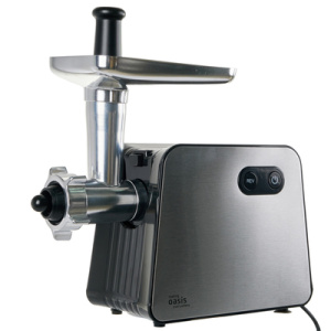 Мясорубки making Oasis everywhere – это кухонные приборы, предназначенные для переработки мяса в фарш. Также они подходят для измельчения овощей, фруктов и других видов продуктов. Три перфорированных диска позволяют сделать фарш разного помола, благодаря отверстиям разного диаметра. А с помощью дополнительных насадок можно сделать домашние колбаски и кеббе. Устройство имеет реверсивный режим, который меняет направление движения шнека, для быстрой очистки мясорубки. Для предохранения двигателя от поломки при долгой работе, есть защита от перегрева. Самозатачивающийся нож повышает срок эксплуатации устройства. Конструкция алюминиевого замка позволяет зафиксировать головку мясорубки одним поворотом. Удобные и понятные клавиши управления обеспечивают комфорт в работе с устройством. Преимущества - самозатачивающийся нож, защита от перегрева, противоскользящая поверхность.