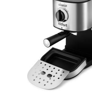Рожковая кофеварка Kitfort КТ-753 приготовит ароматный кофе эспрессо, капучино или латте, а также множество других видов кофе. Приготовление займёт 20–30 секунд. Капучинатор в кофеварке – это паровая трубка с насадкой панарелло. Трубку погружают в холодное молоко, включают подачу пара и взбивают молочную пенку. Также можно подогреть остывший чай, молоко, взбить какао или горячий шоколад. С помощью ручек управления на корпусе кофеварки можно настраивать уровень подачи пара, а также режим работы - подача воды, нагрев воды или приготовление пара. Индикаторы питания и нагрева располагаются на передней панели прибора. Металлический фильтр с лазерным нанесением отверстий долговечен и не требует использования каких-либо расходующихся частей. Металлический рожок хорошо прогревает напиток, а сам напиток получается насыщенным, густым и с хорошей пенкой.
