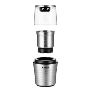 Кофемолка Kitfort КТ-773 предназначена для помола кофейных зёрен, измельчения специй и орехов. Корпус выполнен из металла с элементами из пластика. Кофемолка укомплектована двумя съёмными чашами - чашей для кофе и чашей для специй. В чаше для кофе установлен 2-лезвийный нож для эффективного помола зёрен кофе, а в чаше для специй – 4-лезвийный нож для измельчения. Ножи выполнены из нержавеющей стали. Кофемолка проста в эксплуатации - нет никаких лишних кнопок, а включается она простым нажатием на верхнюю крышку. Защитный механизм не позволит включить кофемолку, если верхняя крышка не установлена. Степень помола зависит от продолжительности работы. Полностью разборная конструкция позволяет легко и быстро очистить кофемолку. На дне есть специальные прорезиненные нескользящие ножки, которые придают прибору устойчивость во время работы.