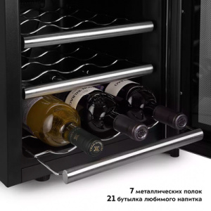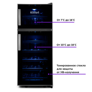Почувствуйте себя настоящим коллекционером! Используйте винный шкаф Kitfort КТ-2407 для правильного хранения вина, подаренного друзьями, привезённого из-за границы или купленного по случаю. Храните белые и красные вина! Камеры винного шкафа Kitfort КТ-2407 снабжены раздельными климатическими зонами, в которых можно хранить разные сорта вина при разной температуре. Максимальное удобство. Рабочий температурный диапазон винного шкафа выставляется отдельно для каждой зоны в пределах от 7 С до 18 С для верхней и от 10 С до 18 С для нижней с шагом в 1 С. Продуманный до мелочей. Винный шкаф оборудован семью надежными металлическими полками. Дверца шкафа из тонированного стекла не пропускает УФ-излучение, что исключает вероятность окисления вина.
