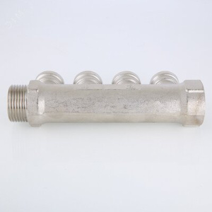 Латунный никелированный коллектор на 2 выхода диаметром 1/2` с внутренней резьбой. Диаметр коллектора – 1`, резьба – внутренняя/наружная, расстояние между выходами - 36 мм. Рабочая температура теплоносителя – до 130 градусов, давление – до 16 бар. Применяется для распределения потоков жидкостей в контурах теплого пола, радиаторного отопления, холодного и горячего водоснабжения. Условная пропускная способность, Kvs -16.7 м3/ч. Для крепления коллекторов VTc.550.N.06 (1`) рекомендуем использовать кронштейны VTc.130.INS.0600, VTc.130.INH.0600, VTc.130.N.0600, VTc.130.IN.0600.