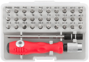 Отвертка с битами для точных работ, 30 бит, удлинитель, в пластиковом боксе