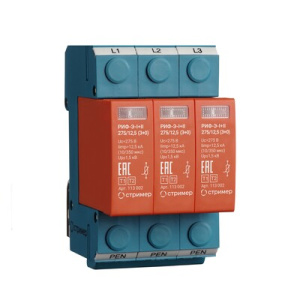 Трехполюсное УЗИП класса I+II ограничивающего типа. УЗИП выполнено в виде трех сменных варисторных модулеи?, и базы для подключения к сети и креплению на DIN-реи?ку 35 мм. УЗИП выдерживает токовые нагрузки, соответствующие УЗИП класса I, а по способности ограничения импульсных напряжении?, допустимых для изоляции оборудования, соот- ветствует УЗИП класса II. Устанавливается в пределах 0А(В) – 1 зон молниезащиты (в соответствии с ГОСТ Р МЭК 62305-1 и СО-153-34.21.122). Применяется для сетеи? с системами заземления - TN-C.