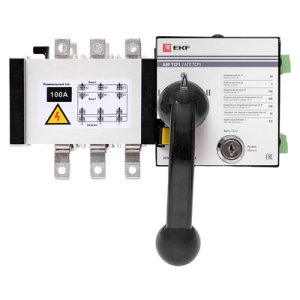 Устройство АВР ТСP1 EKF PRPxima предназначено для обеспечения резервным электроснабжением нагрузки, подключенной к системе электроснабжения, имеющей основной и резервный вводы. Устройство АВР автоматически подключает резервную линию питания в случае пропадания напряжения на основной линии. Выполнено в виде моноблока и состоит из контактного блока и блока управления. На блоке управления имеется рычаг ручного переключения, замковый механизм перевода в ручной или автоматический режимы управления и запорный механизм, обеспечивающий блокировку переключения устройства АВР. Корпус контактного блока выполнен из термостойкой АВС пластмассы. Механизм переключения обеспечивает перемещение контактных групп мостикового типа, которые замыкают цепи или основной линии, или резервной линии, также предусмотрено положение, когда обе линии отключены.