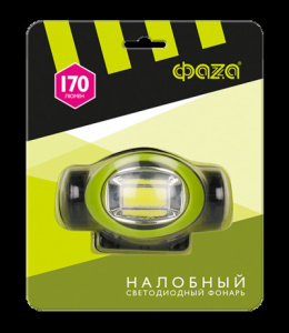 Фонарь ФАZА H5-L3W-gn налобн. 3Вт COB, 3xAAA, зел.