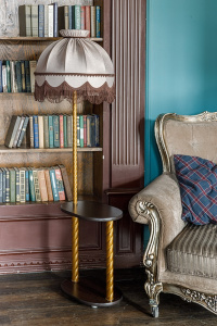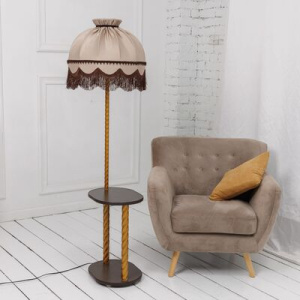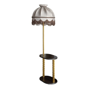 ТОРШЕР СО СТОЛИКОМ эффектный и функциональный предмет интерьера. Вы по достоинству оцените его удобство. Поставьте такой светильник у кровати или рядом с любимым креслом, необходимые вещи всегда будут у Вас под рукой. А мягкий, рассеянный свет торшера сделает Ваш дом уютнее. ГАБАРИТЫ – 157*58*49 см, столик овальной формы – 30*40 см, высота абажура – 37 см, верхний диаметр абажура – 18 см, нижний диаметр абажура – 49 см. АБАЖУР - из ткани софт цвета капучино. Она имеет мягкую, приятную текстуру и деликатный блеск. СТОЛИК_ОСНОВАНИЕ – из ЛДСП, повышенной износо – и влагостойкости, что гарантирует долгий срок службы. Цвет ЛДСП – венге, глубокий, насыщенный, благородный, темный. Это классическое интерьерное решение, которое сохраняет актуальность на протяжении многих лет. СТОЙКА – из стали, цвет латунь.
