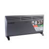 Конвектор обеспечивает равномерный обогрев помещения за счет естественной циркуляции воздуха. Холодный воздух нагревается внутри прибора и выходит через решетки-жалюзи. Отличительной особенностью данной модели является Х-образный монолитный нагревательный элемент, для которого характерна высокая надежность и долговечность. Также данный прибор имеет 2 ступени мощности и оснащен механическим термостатом и автоматической регулировкой температуры. В комплекте поставляются крепления для напольного и настенного размещения.