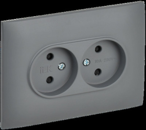SKANDY Розетка 2-местная без заземления с защитными шторками 10А в сборе SK-R09Gr серый IEK