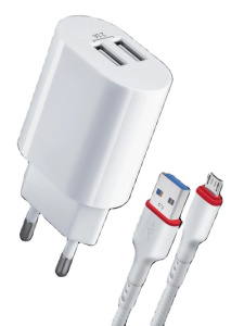 Зарядное устройство сетевое UPC-22, 2xUSB, 5V/2.1А, кабель micro-USB