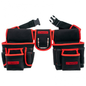 Двойная сумка-пояс Matrix 90240 с 20 карманами и держателем для молотка позволяет всегда иметь при себе необходимые инструменты, при этом оставляя руки свободными. Особенно удобна при проведении работ на стремянках или подмостях. На пояс надеты 2 сумки, между которыми имеется отдельный держатель для молотка, поэтому инструменты можно распределить равномерно. Сумка-пояс пригодится строителям и монтажникам, а также будет полезна в быту.