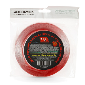 Высоковязкая универсальная акриловая двухсторонняя лента 10 мм, 5 м РОСОМАХА используется во многих областях. Лента обладает водонепроницаемостью, амортизацией, термостойкостью, звукоизоляцией хорошей атмосферостойкостью, так же она имеет высокую адгезию ко всем видам сталей , в том числе нержавеющей, полипропилену и ABS-пластику. Лента может быть успешно ипользована для соединения разнообразных материалов, в том числе дерева, металлов, стекла, бумаги, многих пластиков и тканей. Лента демонстрирует высокую адгезию к материалам с низкой поверхностной энергией, таким как полиэтилен и полипропилен, ламинированные бумаги и др. Высокая начальная адгезия обеспечивает получение прочного соединения через короткое время после нанесения. Подходит для использования как на улице, так и внутри помещения в диапазоне температур от -10 градусов до +120 градусов. Выдеживает примерно 600 грамм на 1 кв.см.