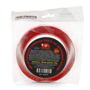 Высоковязкая универсальная акриловая двухсторонняя лента 12 мм, 5 м РОСОМАХА используется во многих областях. Лента обладает водонепроницаемостью, амортизацией, термостойкостью, звукоизоляцией хорошей атмосферостойкостью, так же она имеет высокую адгезию ко всем видам сталей , в том числе нержавеющей, полипропилену и ABS-пластику. Лента может быть успешно ипользована для соединения разнообразных материалов, в том числе дерева, металлов, стекла, бумаги, многих пластиков и тканей. Лента демонстрирует высокую адгезию к материалам с низкой поверхностной энергией, таким как полиэтилен и полипропилен, ламинированные бумаги и др. Высокая начальная адгезия обеспечивает получение прочного соединения через короткое время после нанесения. Подходит для использования как на улице, так и внутри помещения в диапазоне температур от -10 градусов до +120 градусов. Выдеживает примерно 600 грамм на 1 кв.см.