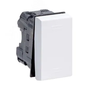 Выключатель 16 А, 250 B. Назначение- включение/выключение освещения. Характеристики- номинальный ток ? 16 А,номинальное напряжение ? 250 B,минимальный ресурс – 100 тыс. циклов включения/выключения. Кол-во модулей- 1. Установочный размер- 45х25. Цвет- белый