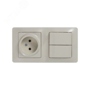 Блок: розетка + выключатель двухклавишный бежевый