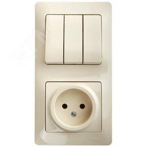 Блок комбинированный Systeme Electric (ранее Schneider Electric) серии Glossa (в сборе, цвет бежевый) предназначен для сетей до 250 В, состоит из розетки на 16 А и 3-клавишного выключателя на 10 А. Блок удобен в применении и отлично подходит для коридора. Трёхклавишный выключатель позволяет управлять тремя источниками света из одной точки. Выполнен из материала PС+ASA, стойкого к УФ-излучению и появлению царапин.