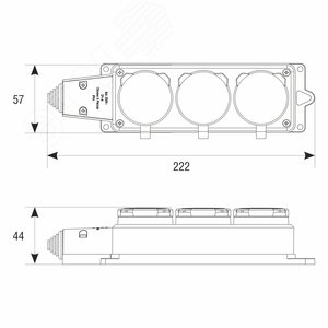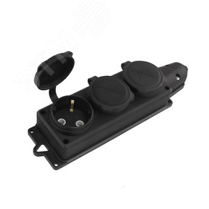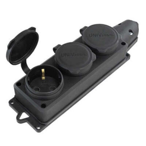 Розетка каучук трехместная с заземлением IP44 компакт