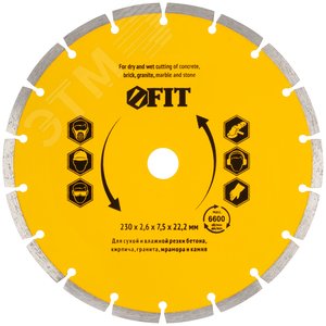 Диск отрезной алмазный сегментный (сухая и влажная резка) 230х2.4х7.5х22.2 мм