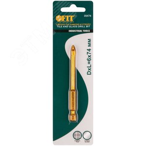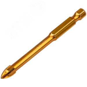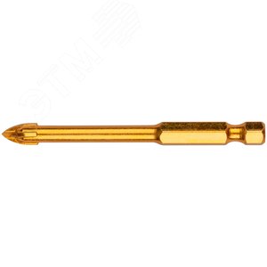 Сверло по кафелю, 4 режущие кромки, титановое покрытие, U-хвостовик под биту 6х74 мм
