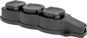 Розетка трехместная с защит. крышками каучуковая 230В 2P+PE 16A IP44 Basic | RPS-015-16-230-44 | EKF