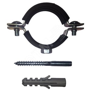 Хомут сантехнический с шпилькой и дюбелем 1'1/4 (39-46 мм) гайка М8 оцинкованная сталь с резиновым у