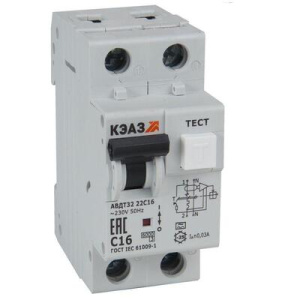 Выключатель автоматический дифференциального тока АВДТ с защитой от сверхтоков 2П 16А 30мА А АВДТ32-