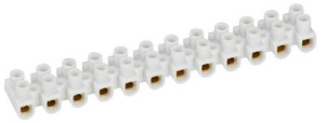 Применяются для винтового соединения проводников, защищая провод от повреждения и исключая возможность замыкания на корпус электроустановки. Изоляционный каркас изготовлен из белого негорючего полистирола или прозрачного полиэтилена, клемма и винты - латунь.