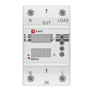 Реле напряжения EKF PROxima являются микропроцессорным устройством и предназначено для постоянного контроля напряжения в однофазных и трехфазных сетях (MRVA-3) переменного тока, для защиты электроустановок от перепадов напряжения. Реле контролирует напряжение в сети в установленном диапазоне и при выходе напряжения за пределы диапазона отключает оборудование от сети электропитания с заданной выдержкой времени. Установка диапазона напряжения и времени срабатывания производится с помощью поворотных регуляторов (RV-5A, RV-32F) либо при помощи кнопок (MRV, MRVA, MRVs) расположенных на лицевой поверхности реле.