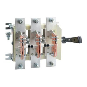 Выключатель-разъединитель 3 полюсный на номинальный ток 1000 А, где установлена несъемная рукоятка, а механическая износостойкость составляет 6300 циклов.
