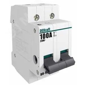 Выключатель-разъединитель серии ВН-102 DEKraft, 2P, номинальный ток 63 А, установка - на DIN-рейку, установочное положение - любое. Выключатели-разъединители применяются для ручного включения/отключения сетей напряжением до 400 В. Специальные мостиковые контакты обеспечивают надежный разрыв цепи, они полностью исключают возможность перекрытия дугой по изоляции. Усиленная рукоятка управления обеспечивает большое количество включений/отключений.