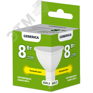 Лампа светодиодная MR16 софит 8Вт 230В 3000К GU5.3 GENERICA