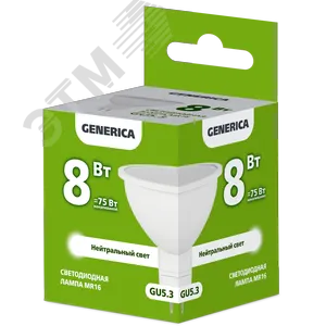 Лампа светодиодная MR16 софит 8Вт 230В 4000К GU5.3 GENERICA