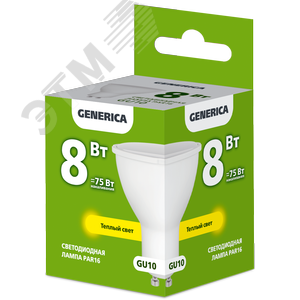 Лампа светодиодная PAR16 софит 8Вт 230В 3000К GU10 GENERICA