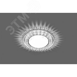Светодиодный светильник разработан специально для натяжных потолков и подвесных систем. Применяется как для декоративной подсветки, так и для основного освещения помещений. Особенностью новых моделей светильников является подсветка кристаллов при помощи светодиодной ленты расположенной по периметру светильника, что обеспечивает возможность отдельного включения светодиодной подсветки или лампы (при подключении к разным выключателям).