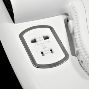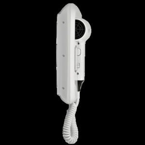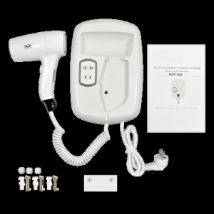 Фен для волос настенный, выполненный в стильном дизайне. Удобный настенный держатель. Два режима обдува с горячим и холодным воздухом. На корпусе держателя расположена дополнительная электророзетка, что очень функционально, особенно при установке в семейных номерах отелей. Легкий монтаж, крепеж входит в комплект.