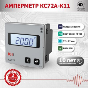 Цифровые амперметры серии КС предназначены для измерения переменного тока в однофазных и трехфазных сетях низкого напряжения с отображением результатов измерения в цифровой форме и передачи результатов измерения по цифровому интерфейсу. Приборы имеют на лицевой панели две кнопки, которые позволяют просматривать на индикаторе измеряемые величины, настраивать прибор. Настройка прибора с лицевой панели осуществляется через меню. Вход в меню настройки защищен паролем. Возможна настройка диапазона показаний прибора в соответствии с примененным на входе прибора измерительным трансформатором. Меню также позволяет сменить пароль доступа в меню, выбрать яркость индикатора, задать порог включения визуальной индикации перегрузки (мигание индикатора), настроить цифровые интерфейсы, выполнить другие настройки. Все настройки прибора хранятся в его энергонезависимой памяти. Приборы с коммуникационным интерфейсом RS485 и поддерживают стандартный протокол Modbus RTU.