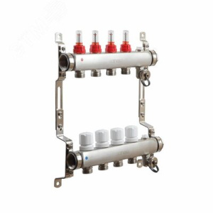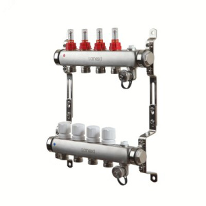 Коллектор SANEXT для теплого пола, предназначен для равномерного распределения и регулирования потоков теплоносителя в контурах теплого пола системы отопления. Коллектор для теплого пола включает встроенные ручные балансировочные клапаны c расходомерами на подающем коллекторе, встроенные запорные клапаны (с возможностью установки сервопривода) на обратном коллекторе, автоматические воздухоотводчики, дренажные клапаны и раздвижные кронштейны.