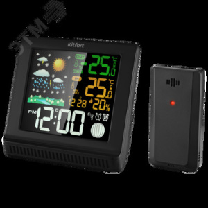 Есть возможность выбрать единицы измерения температуры – градусы Цельсия (°С) или Фаренгейта (°F). Единицы измерения атмосферного давления — гектопаскали. КТ-3382 показывает max. и min. значение температуры и влажности в помещении, а также температуры на улице за сутки. Данная модель оснащена одним датчиком, у которого есть отверстие для настенного крепления, чтобы получать показания температуры и влажности снаружи помещения. Питание датчика происходит от 2 батареек типа AAA (не входят в комплект). Кнопкой ''Настройка'' перейдите к настройке времени будильников и текущих параметров. Кнопки ''Больше'' и ''Меньше'' изменяют значение настраиваемого параметра. Нажатие на кнопку ''История'' показывает максимальные и минимальные значения температуры и влажности.