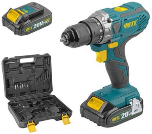 Дрель-Шуруповерт аккумуляторная 20 В, 0-400/1400 об/мин, 40 Нм, 2, Li-Ion 2,0 Ач, 1,25 ч., резиновая накладка, кейс