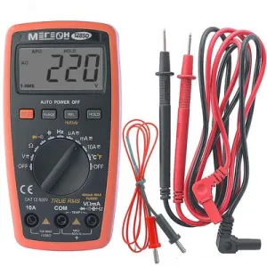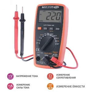 Цифровой мультиметр с автоматическим выбором диапазона МЕГЕОН 12850 - это надежный, компактный и функциональный прибор с ручным выбором режимов и большим жидкокристаллическим дисплеем, который обеспечивает высокую точность и разрешение. Мультиметр МЕГЕОН 12850 может использоваться для измерения постоянного и переменного тока, напряжения, сопротивления, ёмкости, частоты, скважности, проверки диодов и «прозвонки» цепей. Мультиметр оснащен защитой от перегрузки, индикатором разряда батареи, функцией фиксации текущего значения (HOLD) и откидной подставкой-упором на задней панели для удобства использования. Благодаря полноте набора измерительных функций, высокой точности измерения и удобству эксплуатации, этот мультиметр является идеальным прибором для лабораторий и производства, а также для быта и хобби.