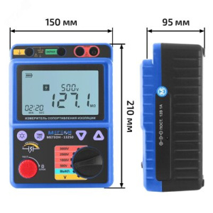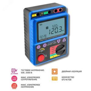 Измеритель сопротивления изоляции МЕГЕОН 13250 представляет собой портативный измерительный прибор для проверки сопротивления изоляции с использованием высоких значений испытательных напряжений. Корпус прибора имеет стильный двухцветный внешний вид и яркие наклейки- указатели. Для проведения испытаний предусмотрено четыре тестовых напряжения: 500В, 1000В, 2500В, 5000В. А также предусмотрено выключение испытательного напряжения по окончании измерения. Благодаря наличию яркой светодиодной подсветки дисплея предоставлена возможность работы в условия недостаточной видимости или в отсутсвуии освещения. Для сохранения уровня заряда элементов питания предусмотрена функция автоматического выключения питания. Измеритель сопротивления изоляции (мегаомметр) внесен в государственный реестр СИ, под номером 74507-19, срок периодической поверки составляет два года.
