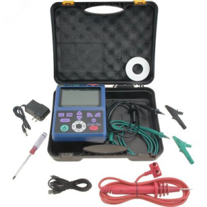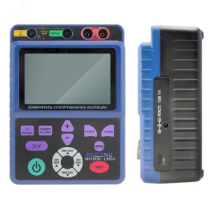 МЕГЕОН 13950 представляет собой портативный контрольно-измерительный прибор для проверки сопротивления изоляции с использованием высоких значений испытательных напряжений оснащен USB интерфейсом. Для работы предусмотрено пять режимов измерения с автоматическими переключением пределов сопротивления и выключением испытательного напряжения по окончании измерения. Исследования сопровождаются визульным оповещением при превышении предела диапазона измерения. При завершении проверки прибор самостоятельно разрядит проверяемую цепь с сопровождением визуальной и звуковой сигнализацией. Мегаомметр оснащен большим ЖК-дисплеем с интегрированной светодиодной подсветкой. На дисплей прибора выводится вся необходимая информация - текущие показатели сопротивления и напряжения. Для сохранения уровня заряда элементов питания предусмотрена функция автовыключения питания. Мегаоометр внесен в государственный реестр СИ, под номером 74507-19, срок периодической поверки составляет 2 года.