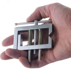 Вспомогательное устройство МЕГЕОН ДВУ-006 предназначено для быстрого и удобного крепления испытуемых образцов. Максимальная нагрузка составляет 500Н. Испытуемый материал надежно и быстро монтируется при помощи струбцины. Может использоваться с динамометрами МЕГЕОН серий 03ХХХ и 04ХХХ. Устройство крепится к динамометру на стандартное резьбовое соединение. Область применения обширна. Тесты резиновых изделий, изделий из пластика, различные кабели и провода, различные электрические компоненты и т.д.